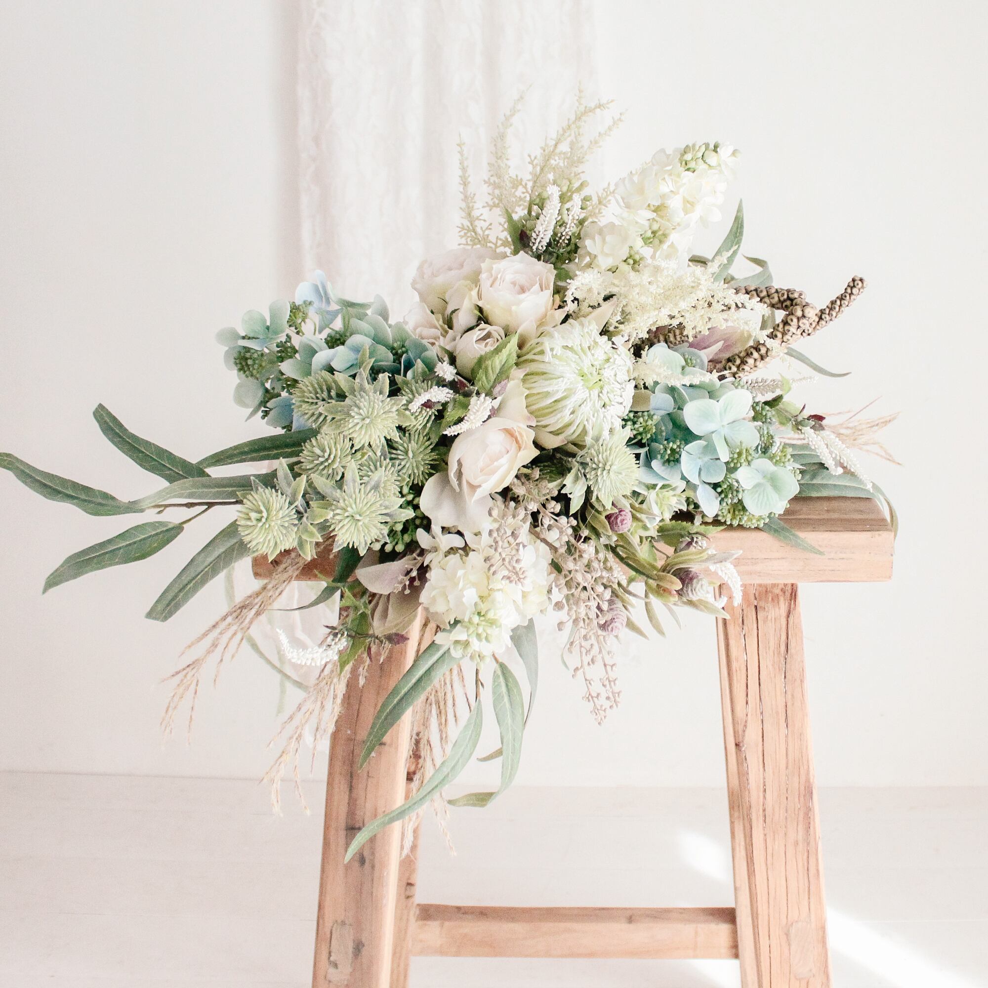 ドライフラワーのような印象でもありながら、全てアーティフィシャルフラワーでお作りしている為、空気感のある仕上がりに。お持ち運びも安心です☆